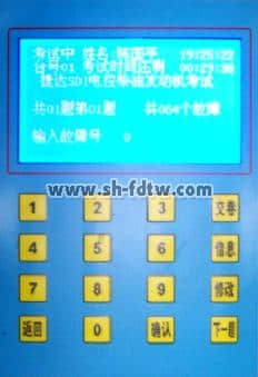 (3)學(xué)生終端由大屏幕液晶顯示器和觸摸答題鍵組成,學(xué)生屏平時顯示學(xué)生姓名、學(xué)號、標(biāo)準(zhǔn)時鐘,考試時顯示考試剩余時間、考試題目名稱及故障現(xiàn)象描述、考試題目數(shù)、每題的故障點數(shù)以及考試剩余點數(shù)。