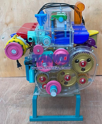 本品選用透明有機玻璃制作,內(nèi)中部件均以硬質(zhì)塑料料加工。各部分都以壓模成形加工,代替過去膠粘合的方法,使產(chǎn)品在強度上有很大提高。發(fā)動機總成用電機驅(qū),能演示發(fā)動機轉(zhuǎn)速高低。