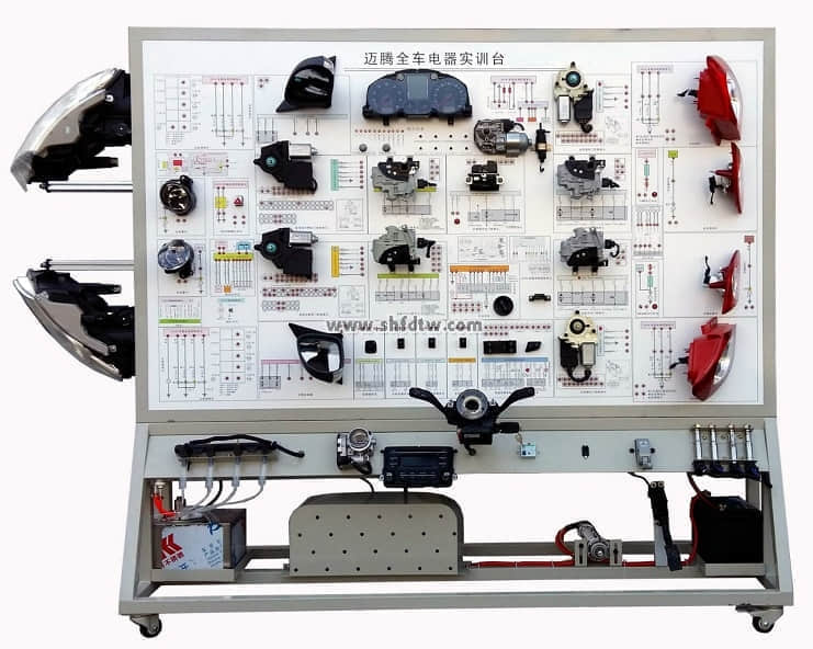 整車電器示教板(大眾邁騰)采用 大眾邁騰 整車電器實(shí)物為基礎(chǔ),充分展示汽車發(fā)動機(jī)防盜系統(tǒng)、儀表系統(tǒng)、燈光系統(tǒng)、雨刮系統(tǒng)、喇叭系統(tǒng)、點(diǎn)火系統(tǒng)、電動車窗系統(tǒng)、電動門鎖、音響系統(tǒng)、起動系統(tǒng)和充電系統(tǒng)等汽車電器各系統(tǒng)的組成結(jié)構(gòu)和工作過程。