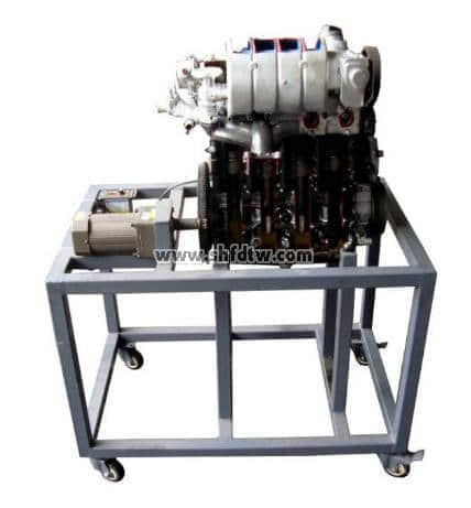 該設(shè)備采用發(fā)動機總成進行剖面處理,各部件齊全,剖面位置合理,能全面展示發(fā)動機內(nèi)外部結(jié)構(gòu)和部件的運動情況,適用于發(fā)動機原理和機械機構(gòu)的教學(xué)。