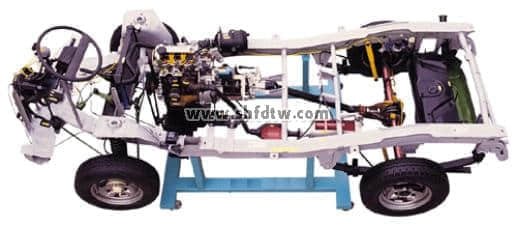解剖的發(fā)動機、變速器、驅(qū)動橋、車架與對半解剖的車身總成(包含系統(tǒng)各總成及內(nèi)外附件等)、電動機、移動式的安裝底座等、臺架操作說明書等附件。