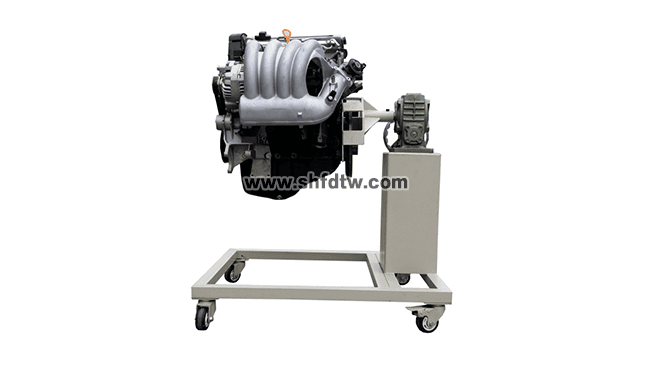 1.采用翻新大眾桑塔納2000 AJR電控汽油發(fā)動機總成(易于拆裝),組裝在專用發(fā)動機拆裝翻轉(zhuǎn)架上。