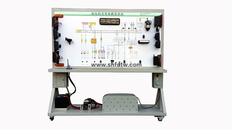 該拖拉機(jī)全車電器實(shí)訓(xùn)臺采用拖拉機(jī)整車電器實(shí)物為基礎(chǔ),充分展示儀表系統(tǒng)、燈光系統(tǒng)、雨刮系統(tǒng)、喇叭系統(tǒng)、發(fā)動機(jī)電器系統(tǒng)、起動系統(tǒng)和充電系統(tǒng)等電器各系統(tǒng)的組成結(jié)構(gòu)和工作過程。