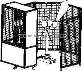 葉片、輪轂、發(fā)電機(jī)、機(jī)艙、尾舵和側(cè)風(fēng)偏航控制機(jī)構(gòu)組裝成水平軸永磁同步風(fēng)力發(fā)電機(jī),安裝在塔架上。風(fēng)場(chǎng)由軸流風(fēng)機(jī)、軸流風(fēng)機(jī)支架、軸流風(fēng)機(jī)框罩、測(cè)速儀、測(cè)速儀支架、風(fēng)場(chǎng)運(yùn)動(dòng)機(jī)構(gòu)箱體、傳動(dòng)齒輪鏈機(jī)構(gòu)、單相交流電動(dòng)機(jī)、滾輪和萬(wàn)向輪等組成。軸流風(fēng)機(jī)和軸流風(fēng)機(jī)框罩安裝在風(fēng)場(chǎng)運(yùn)動(dòng)機(jī)構(gòu)箱體上部,傳動(dòng)齒輪鏈機(jī)構(gòu)、單相交流電動(dòng)機(jī)、滾輪和萬(wàn)向輪組成風(fēng)場(chǎng)運(yùn)動(dòng)機(jī)構(gòu)。當(dāng)風(fēng)場(chǎng)運(yùn)動(dòng)機(jī)構(gòu)中的單相交流電動(dòng)機(jī)旋轉(zhuǎn)時(shí),傳動(dòng)齒輪鏈機(jī)構(gòu)帶動(dòng)滾輪轉(zhuǎn)動(dòng),風(fēng)場(chǎng)運(yùn)動(dòng)機(jī)構(gòu)箱體圍繞風(fēng)力發(fā)電機(jī)的塔架作圓周旋轉(zhuǎn)運(yùn)動(dòng),當(dāng)軸流風(fēng)機(jī)輸送可變風(fēng)量風(fēng)時(shí),在風(fēng)力發(fā)電機(jī)周?chē)纬娠L(fēng)向和風(fēng)速可變的風(fēng)場(chǎng)。