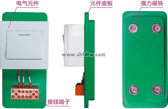 (1)各實(shí)驗(yàn)器材器具、插座、開(kāi)關(guān)等,采用模塊化形式,以便于組織和實(shí)施考試工作,考試模塊與實(shí)驗(yàn)屏之間采取快速連接方式:任何一個(gè)考試模塊,均可在20秒之內(nèi)實(shí)現(xiàn)取、放、固定到底板上或更換,并可根據(jù)考試電路的要求,平滑移動(dòng)到實(shí)驗(yàn)屏上任意位置。