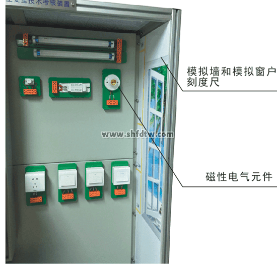 3、設(shè)備配置:柜內(nèi)裝有單聯(lián)開(kāi)關(guān)、雙聯(lián)開(kāi)關(guān)、單三相電度表、照明燈、日光燈等各種實(shí)訓(xùn)元器件,且所有器件的接線(xiàn)都在接線(xiàn)端子排上進(jìn)行接線(xiàn),從而避免了因長(zhǎng)時(shí)間在器件本身進(jìn)行走線(xiàn)而導(dǎo)致其損壞,通過(guò)走線(xiàn)槽進(jìn)行工藝布線(xiàn)。內(nèi)含:電源開(kāi)關(guān)(單相斷路器3只、三相斷路器1只)、電能表2只、照明燈(白熾燈、日光燈各1個(gè))、熔斷器2個(gè)(備注額定電流32A以上)、漏電保護(hù)器1個(gè)、組合開(kāi)關(guān)1個(gè)、單雙聯(lián)開(kāi)關(guān)各1個(gè)及接線(xiàn)端子若干。