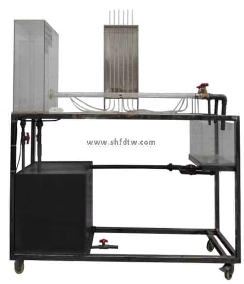 1、測定流體在不同雷諾數情況下,管流的沿程水頭損失和沿程阻力系數。上一個產品:雙變坡水槽實驗裝置