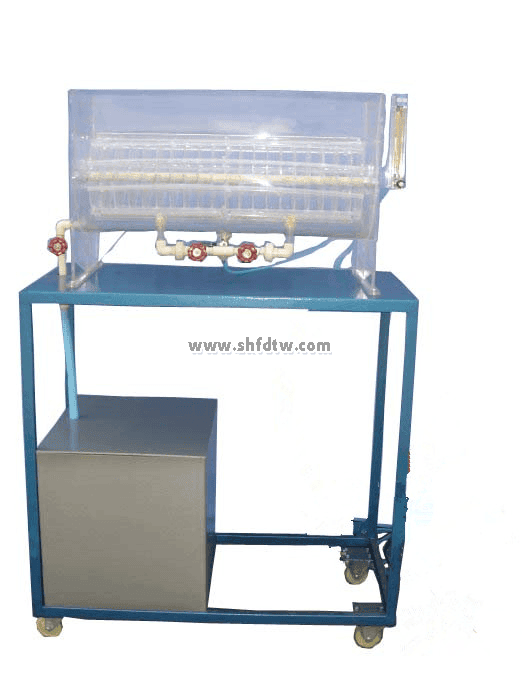 氣體流量計(jì)、液體流量計(jì)、水自動(dòng)反沖洗裝置、三角配水槽、反沖洗出水槽、 PVC清水箱、不銹鋼進(jìn)水泵、壓力表、過濾濾帽、濾料(石英砂)、不銹鋼臺(tái)架、電器控制箱。