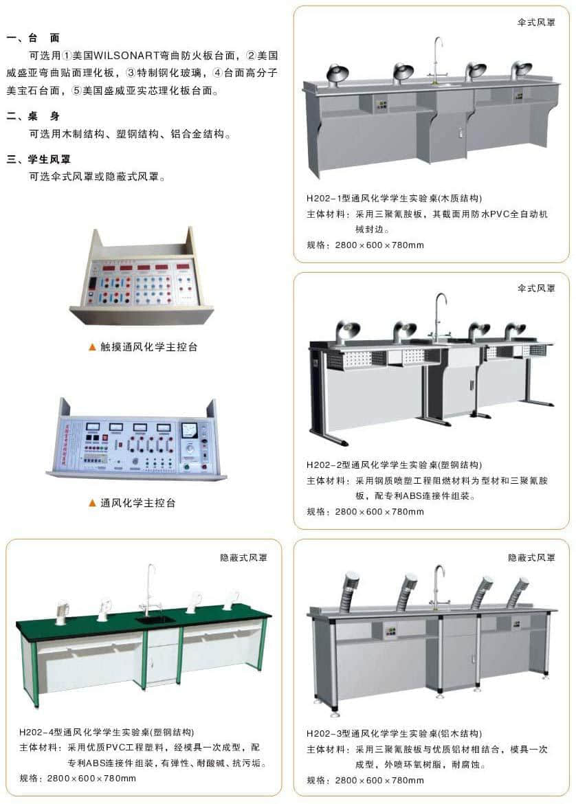 化學通風實驗臺適用于高中、初級中學、職業(yè)、技?;瘜W實驗室,高校有機化學、應用化學等專業(yè)實驗室,新的設計與布局使該裝置有效的排出在化學實驗中所產(chǎn)生的有害氣體及蒸汽,從而保證師生在無污染中工作學習,不需通風時,可隱蔽到實驗桌成為水平、不會擋住教師的視線。有效提高實驗質(zhì)量,是學校實驗室規(guī)范化、標準化、上水平、上檔次的重要標志。