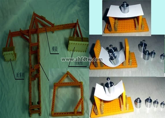 零件數(shù)量不少于200個,可完成的試驗項目有拱形結(jié)構(gòu)、桁架橋、籃球架、人字梯、三角形桁架橋、四桿框架-單杠、斜拉橋和桌子。