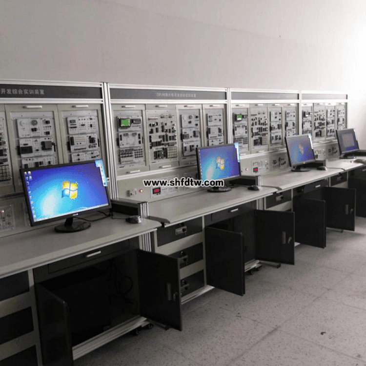 實(shí)驗(yàn)臺(tái)是整個(gè)系統(tǒng)的依托,框架采用歐洲標(biāo)準(zhǔn)工業(yè)鋁型材30*30mm,本產(chǎn)品采用上下兩部分分離式設(shè)計(jì)。上半部分是實(shí)驗(yàn)掛箱區(qū),可安裝3個(gè)或4個(gè)活動(dòng)掛箱及其接口功能模塊,是系統(tǒng)的核心部分;下半部分是支撐部分,包括操作臺(tái),臺(tái)面采用高密度板貼面一次成型,具有防火防靜電功能、儲(chǔ)物抽屜、儲(chǔ)物柜以及電腦機(jī)箱存放處,材料采用16mm高密度板,有PVC封邊成型。實(shí)驗(yàn)臺(tái)尺寸可選,每個(gè)實(shí)驗(yàn)臺(tái)兩個(gè)工位,可供兩名學(xué)生同時(shí)操作,每個(gè)實(shí)訓(xùn)臺(tái)配備兩個(gè)學(xué)生座椅。座椅面為圓形,pvc材料,支架為鋼結(jié)構(gòu),不帶靠背。交流供電為單相三線(xiàn)220V±10%,配有漏電保護(hù)裝置,系統(tǒng)內(nèi)置高性能直流穩(wěn)壓電源(輸出:±12V/1A , +5V/5A)。