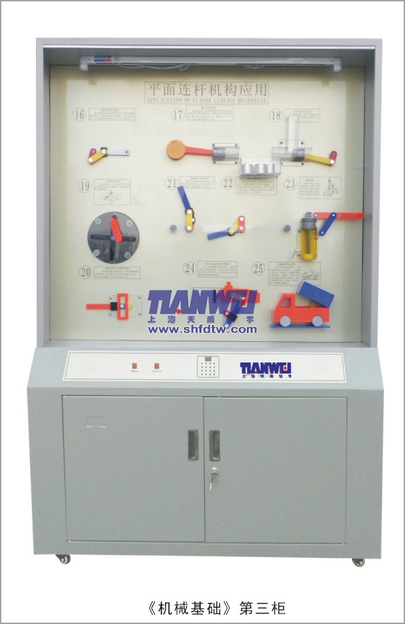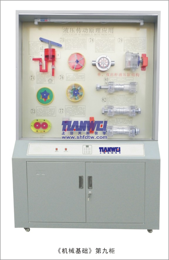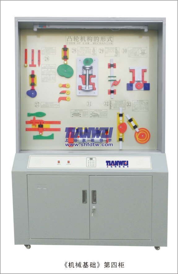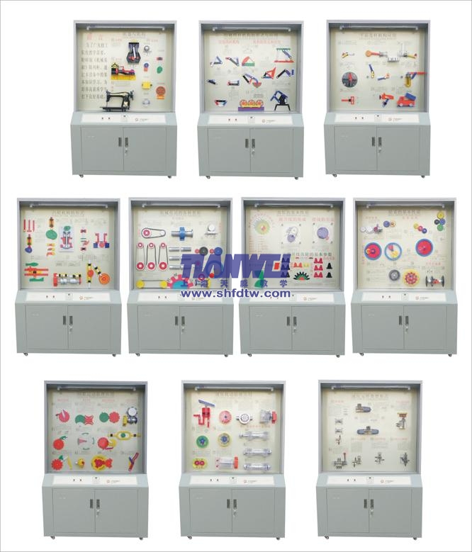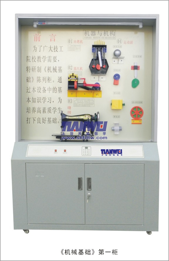 根據(jù)全國(guó)技工學(xué)校機(jī)械類通用教材《機(jī)械基礎(chǔ)》示教陳列柜是一套電化教學(xué)設(shè)備。本陳列柜共分十個(gè)柜,陳列柜通過機(jī)械模型或?qū)嵨?,配合相?yīng)的圖文資料,形象地展示與解說機(jī)械基礎(chǔ)的基本知識(shí),加強(qiáng)學(xué)生對(duì)通用機(jī)械基礎(chǔ)的類型、結(jié)構(gòu)特點(diǎn)及其設(shè)計(jì)的感性認(rèn)知,為進(jìn)一步學(xué)習(xí)機(jī)械基礎(chǔ)奠定基礎(chǔ)。