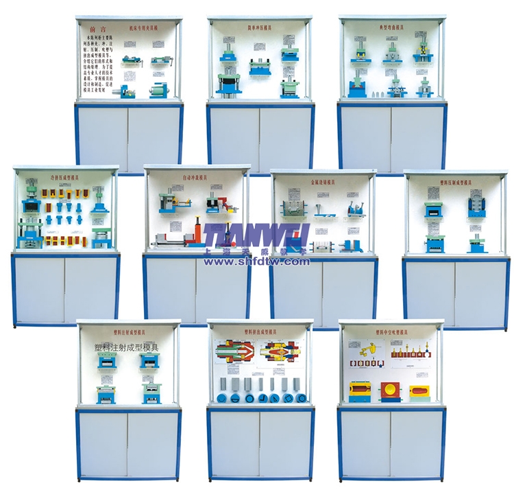 本套模具示教陳列柜產(chǎn)品力求實用根據(jù)學(xué)校教學(xué)要求需要、特制一套《冷沖壓與塑料成型工藝及模具設(shè)計》與《塑料成型模具》等教材設(shè)計而成的模具示教陳列柜,這套陳列柜共分十個柜 , 具有多功能語音播放控制系統(tǒng)。