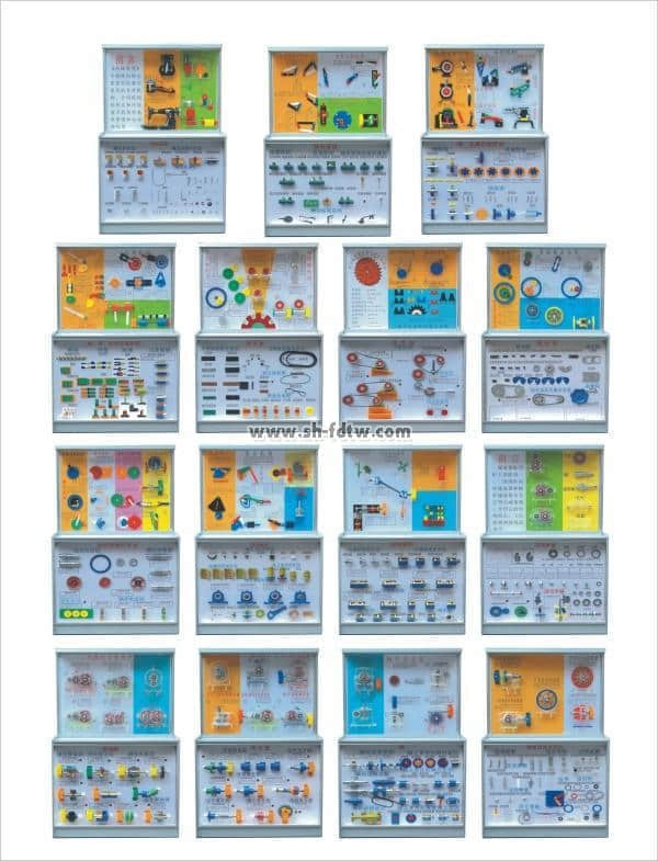 本公司的機械綜合陳列柜設備是根據(jù)大中專院校、職業(yè)學校的教學大綱設計的多功能機械綜合陳列室是一套《機械原理》《機械零件》《減速器》共500余種模型分三大類合并成的電化教學設備。共15個柜,30個板面,由上下電動升降電腦控制主控臺控制。機械原理與減速器采用CD解說,遙控控制,聲控同步進行演示;又根據(jù)教材、教學需要而任意選擇單獨運轉(zhuǎn)演示。制作材料采用進口有機板和硬聚氯加工;板面附面有銀滌淪不干膠作必要的圖表和文字說明。演示逼真,運行自如可靠,制作工藝美觀。本產(chǎn)品的特點:使作方便,占地面積小,結構新穎實用,是一套現(xiàn)代化的機械課程必不可少陳列室設備。