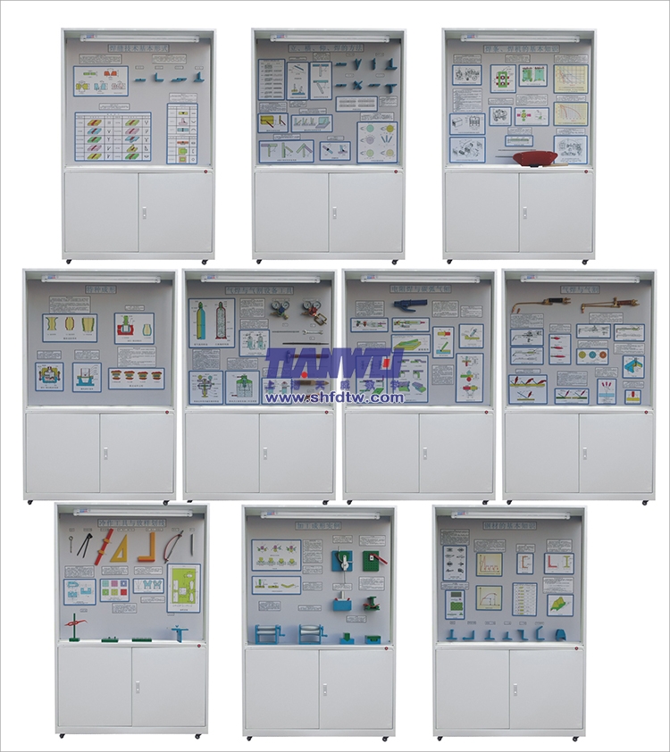 為了滿足教學需求,不斷提高技工學校的培訓質量,強調了基本理論和基本技能的訓練。焊、鉚工在機械制造工業(yè)中,使兩個或兩個以上零件聯(lián)接在一起的方法有螺釘聯(lián)接、鉚釘聯(lián)接和焊接。焊接就是利用兩個物體原子間產(chǎn)生的結合作用來實現(xiàn)聯(lián)接,聯(lián)接后不能再拆卸,成為永久性聯(lián)接。本套陳列柜共分10個柜。