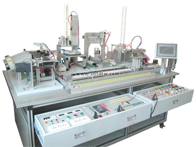 可以安裝送料機構、機械手、傳輸分揀機構。實訓模塊及PLC主機等可以放置在拉出式的支架上。