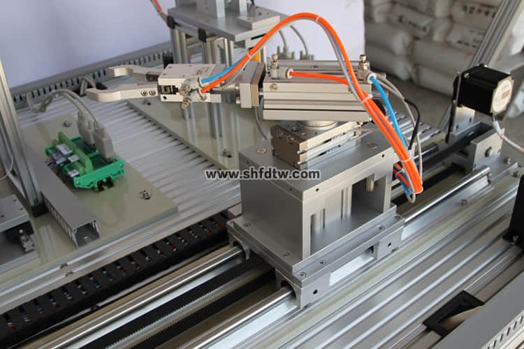 主要由直線電機驅動器、直線導軌、四自由度搬運機械手、定位開關、行程開關、支架、機械零部件構成。