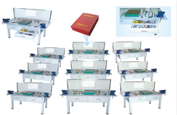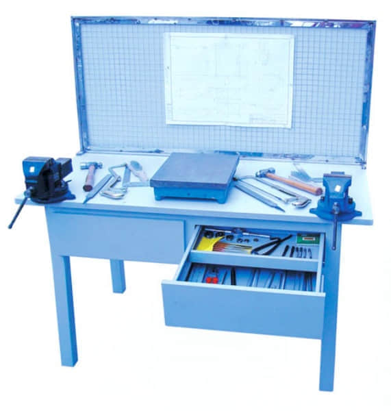 本公司生產(chǎn)鉗工實驗室設(shè)備根據(jù)教學(xué)大綱要求及學(xué)員實訓(xùn)操作需要而開發(fā)的,教學(xué)要求配備的鉗工工具通用化,標(biāo)準(zhǔn)化和專用化,該實驗室配備的鉗工桌采用鋼板結(jié)構(gòu),桌面用鐵質(zhì)鈑金亞光密紋噴塑制作,堅固耐用。鉗工工具采用通用化、標(biāo)準(zhǔn)化和專業(yè)化,可提高學(xué)生的操作技術(shù)和動手能力。天威教學(xué)公司鉗工大多是在鉗工臺上用手工工具操作,對工件進行加工。
