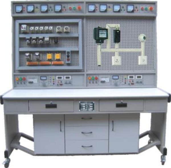 本裝置主要由實(shí)訓(xùn)桌、電源控制箱、實(shí)訓(xùn)元器件模塊、網(wǎng)孔板組成,網(wǎng)孔板表面均布“?”字網(wǎng)孔,元器件和走線槽等裝在特制的底座上,底座與網(wǎng)孔板相配套,實(shí)訓(xùn)時(shí)不需多人配合費(fèi)好多時(shí)間把元器件用螺絲逐個(gè)固定在網(wǎng)孔板上,僅需取出相應(yīng)的元器件模塊,在網(wǎng)孔板上選好位置一插一拉即可緊緊地固定在網(wǎng)孔板上,構(gòu)思巧妙,克服了一直以來圍繞所有廠家網(wǎng)孔板實(shí)訓(xùn)設(shè)備實(shí)訓(xùn)考核時(shí)所需的煩鎖的螺絲固定元器件的難題。元器件的合理安裝、線路的合理布局,全部由學(xué)生自行完成,有效培養(yǎng)學(xué)生的電工技能和工藝操作。添加元器件能完成大中專院校、職校、技校的《機(jī)床電路訓(xùn)練》、《電工技能訓(xùn)練》、《維修電工技能訓(xùn)練》、《電氣控制技術(shù)》等相關(guān)電工技能、電工儀表與測(cè)量課程實(shí)訓(xùn),也可作為電工考證的考核設(shè)備。