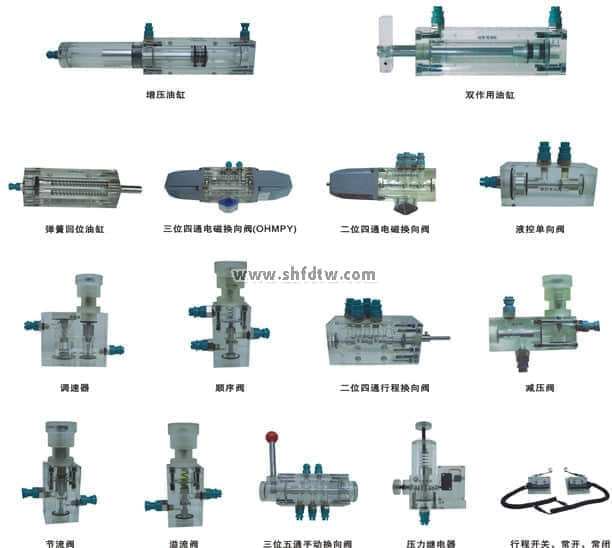 4、實(shí)驗(yàn)元件均為透明有機(jī)材料制成,便于了解掌握幾十種常用液壓元件的結(jié)構(gòu),性能及用途。掌握幾十種基本回路的工作原理,實(shí)驗(yàn)組裝回路快捷、方便。