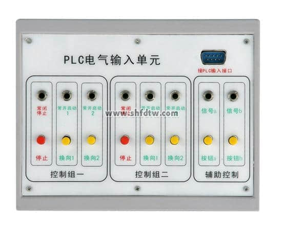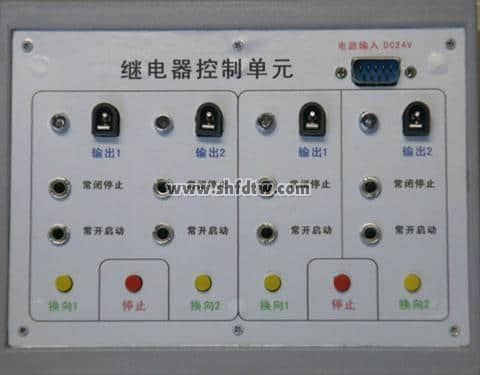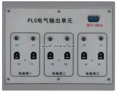 (4)輸入模塊:與PLC采用電纜9針232接口連接。連接后為PLC提供8路主令輸入信號(hào)(其中2路為常閉信號(hào)),及通過信號(hào)插孔為PLC提供自動(dòng)控制信號(hào)。(如:行程開關(guān)位置信號(hào)等);輸出模塊:與PLC采用電纜9針232接口連接。通過輸出接口插孔控制電磁閥通斷;繼電器控制模塊:與電源模塊連接后,進(jìn)行主令信號(hào)控制,及提供自動(dòng)控制信號(hào)接口進(jìn)行自動(dòng)控制。通過輸出口插孔控制電磁閥通斷。