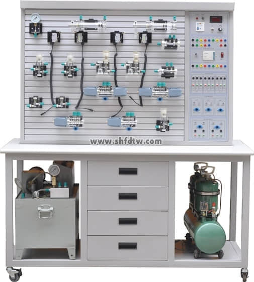 利用此套實訓設備既可分別獨立地進行氣動控制、液壓控制相應的基本回路及其應用實驗,也可綜合地進行相互配合的實驗:如實現氣-電控制,氣-液控制,電-液控制,以及氣-電-液綜合控制等。