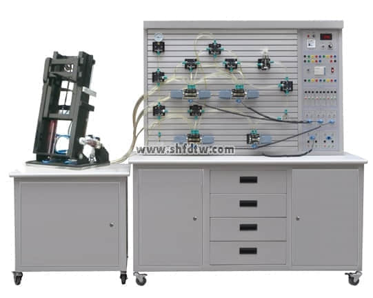 2、透明液壓PLC控制實(shí)訓(xùn)裝置(叉車液壓實(shí)訓(xùn)臺(tái))是將液壓叉車的結(jié)構(gòu)原理能夠搬到課