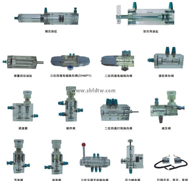 4、實(shí)訓(xùn)元件均為透明有機(jī)材料制成,便于了解掌握幾十種常用液壓元件的結(jié)構(gòu),性能及用途。掌握幾十種基本回路的工作原理,實(shí)驗(yàn)組裝回路快捷、方便。