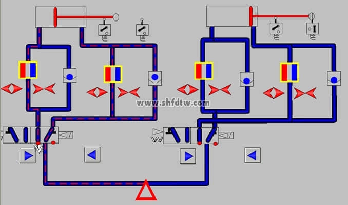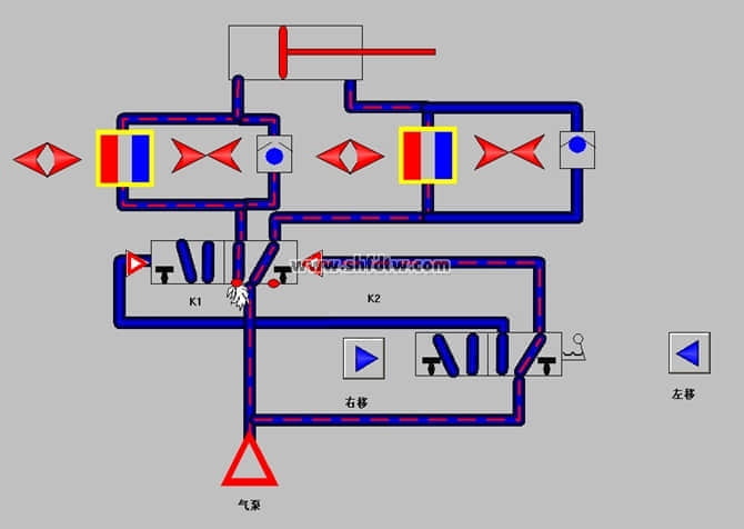 五、組態(tài)仿真畫(huà)面演示控制的氣動(dòng)控制實(shí)訓(xùn)示列