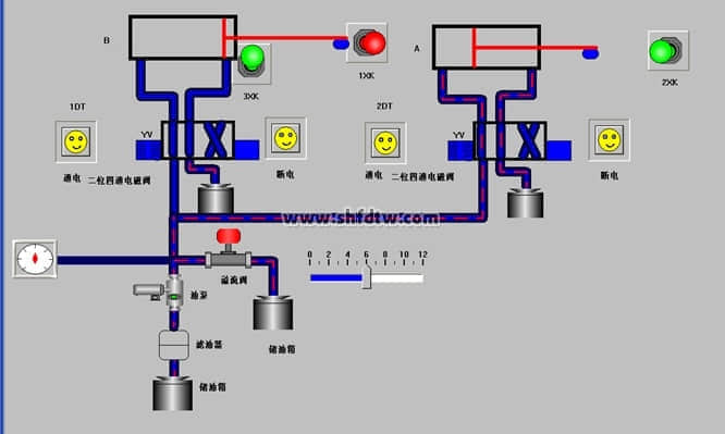 五、通過(guò)組態(tài)仿真畫(huà)面演示及控制的液壓回路示列