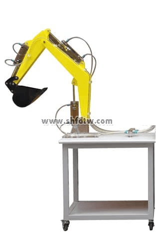 實(shí)訓(xùn)臺主要由底柜,透明大臂,透明斗桿,透明挖斗(紅色),透明油缸,透明集成閥島,透明手動換向閥,透明電磁閥,旋缸馬達(dá),減速器等成