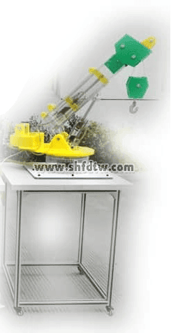 由底柜,透明大臂,透明二級臂,,透明油缸,吊勾,旋轉(zhuǎn)馬達,卷繩電機,透明集成閥島,透明手動換向閥,支架組成.