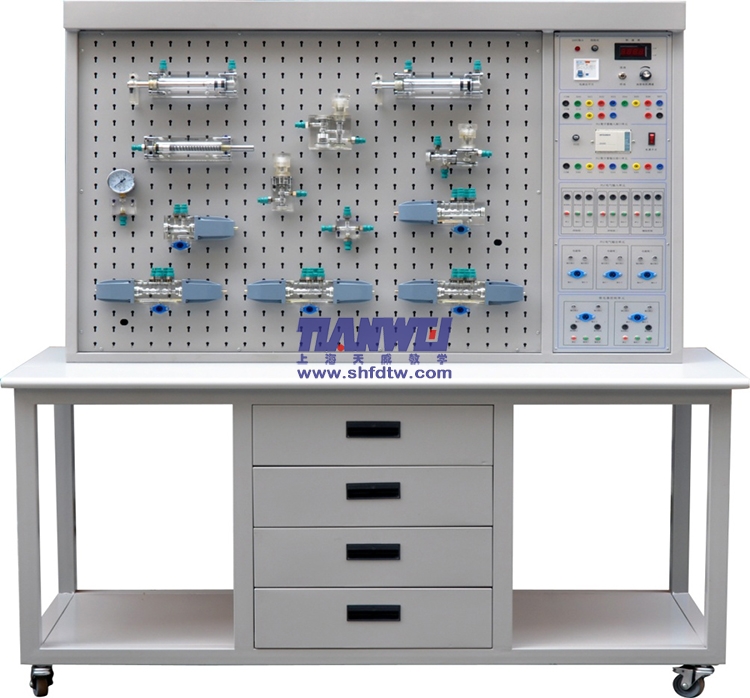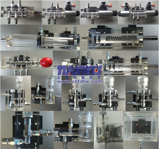 4、實驗元件均為進口透明有機材料制成,便于了解掌握幾十種常用液壓元件的結(jié)構(gòu),性能及用途。掌握幾十種基本回路的工作原理,實驗組裝回路快捷、方便。