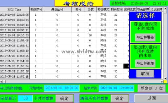 a. 教師模式下進(jìn)入“考核成績”頁面,可檢查歷次考核記錄。并可導(dǎo)出到U盤。