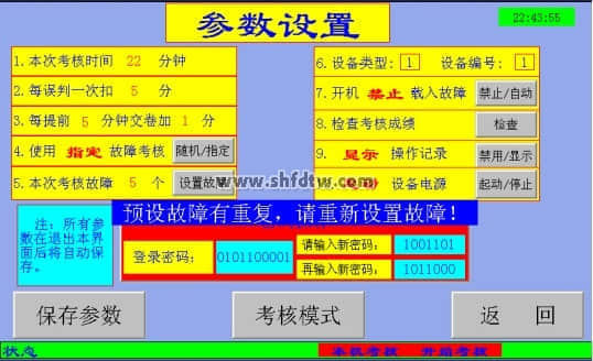 e. 如果設(shè)置的是隨機(jī)故障考核模式,則每次進(jìn)此頁面時(shí)系統(tǒng)都會(huì)重新隨機(jī)出題。